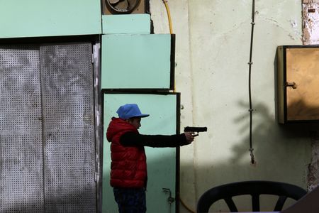 A winter’s day in the old city of Jaffa. My roving eye picks up a movement in the alley outside. A boy with a gun, pointing at…what? I can’t see, but he doesn’t shoot. In a split second I scan the café, note the groups of men sitting, standing, talking, watching, and slowly lift the camera up.